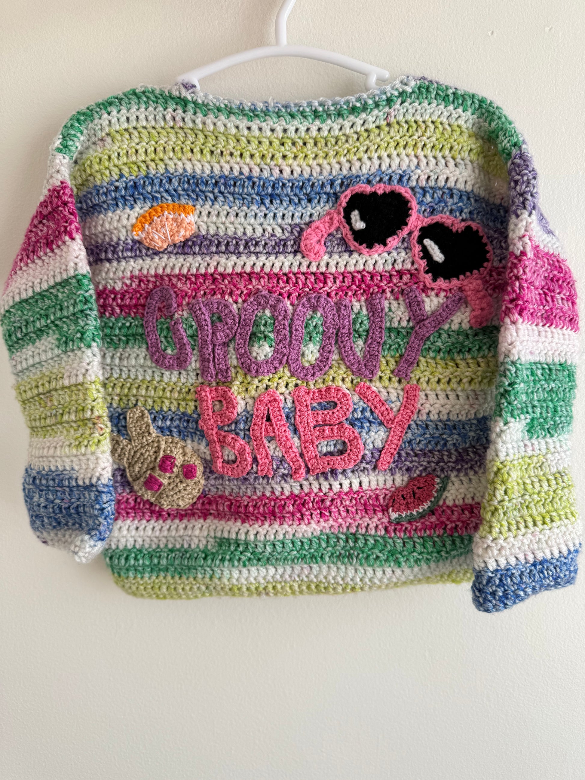 Hand Crochet jumper in size 12-18months embellished with hand crochet appliqués in 100% cotton yarn.
